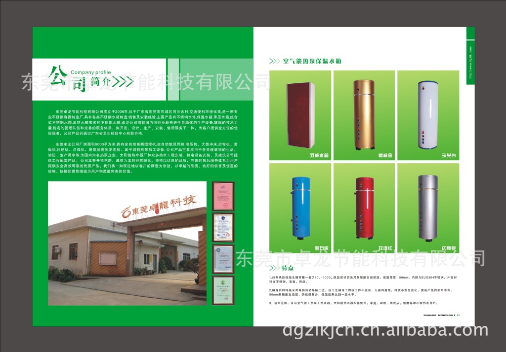 東莞市卓龍節(jié)能有限公司專業(yè)生產(chǎn)100L-1000L承壓式保溫水箱,分壁掛式和立式兩種。適用于太陽(yáng)能熱水系統(tǒng)、熱泵熱水系統(tǒng)、鍋爐熱水系統(tǒng)、熱水爐和各種需要液體保溫的場(chǎng)所。為國(guó)內(nèi)外熱水器、熱泵熱水器廠家生產(chǎn)配套,讓有志于熱水器行業(yè)的廠家在市場(chǎng)上無(wú)后顧之憂。