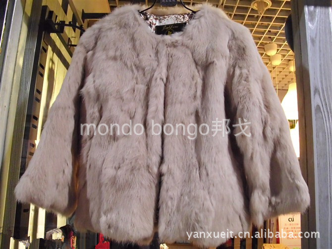 批發(fā)2012新款兔毛皮草外套 圓領(lǐng)七分袖短款修身韓版女裝