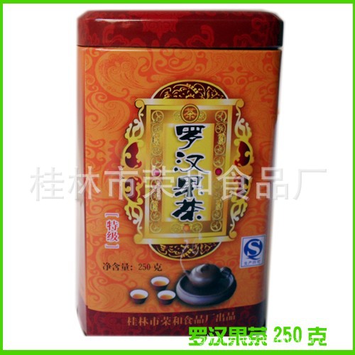 羅漢果茶是由烏龍茶、桂花、羅漢果、甘草、桂皮等八桂特產(chǎn)經(jīng)特殊工藝制作而成.”。羅漢果為傳統(tǒng)中藥和出口商品之一,營養(yǎng)價值高,是古代唐美人楊貴妃愛喝的一種茶。它味甘甜,具有獨(dú)特的潤喉功效。氣味淡而不溥,久而不弱,清而不濁,靜而不散,散而不走。常飲可起到潤肺、止咳、健脾、補(bǔ)腎益腎,治咽炎,降脂降壓之功效(羅漢果含一種比蔗糖甜300倍的甜味素,但它不產(chǎn)生熱量,所以是糖尿病、肥胖等不宜吃糖者的理想替代飲料。