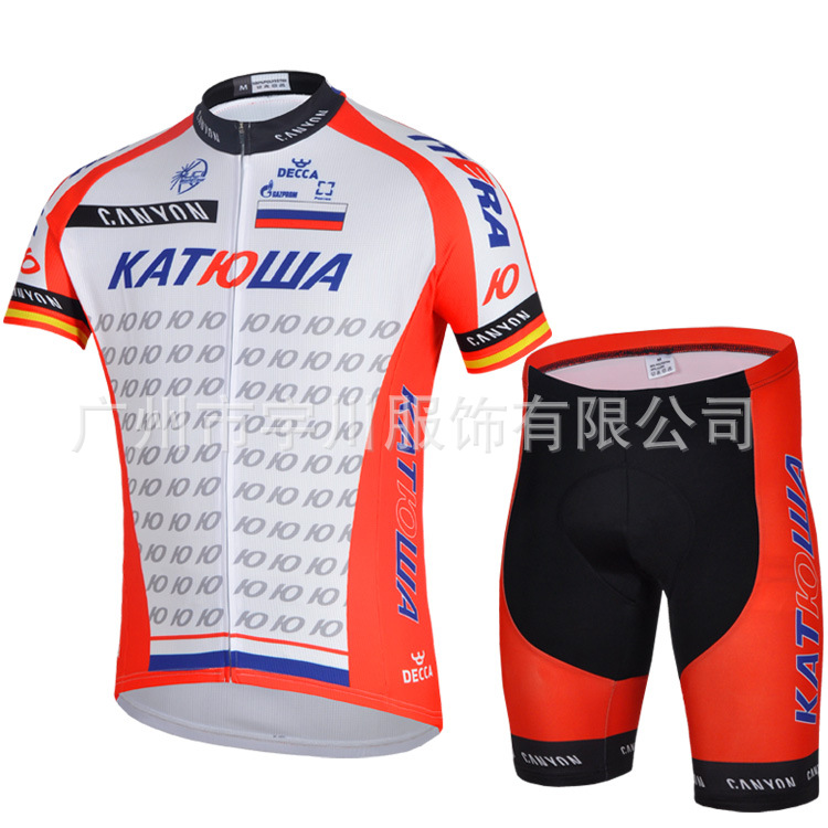 14俄羅斯紅白短袖騎行服套裝新款 透氣排汗夏季男自行車單車服