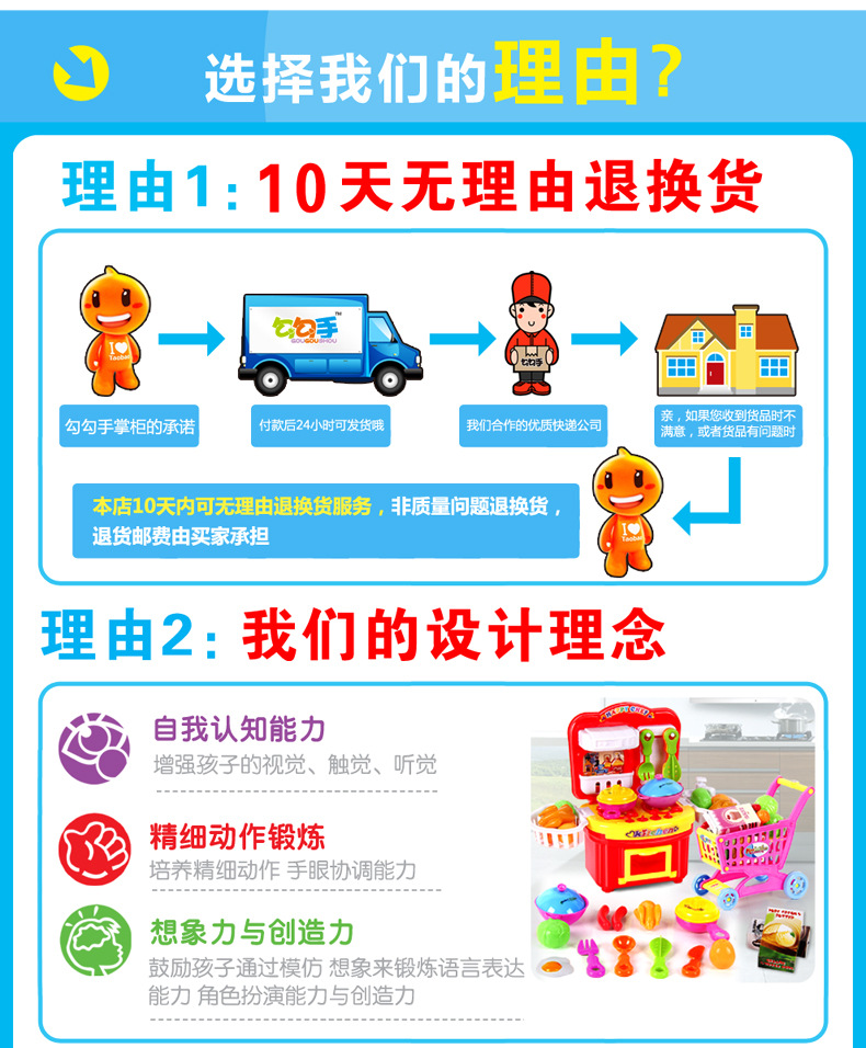 2.由于玩具產(chǎn)品的特殊性,和家電產(chǎn)品不能相提并論,因此我司所有售出的玩具產(chǎn)品均不實(shí)行三包政策,如屬使用后產(chǎn)生的問題,我司不承擔(dān)任何責(zé)任,如在我司能力范圍內(nèi),會(huì)幫助解決這些問題,但所產(chǎn)生的一切相關(guān)費(fèi)用由客戶自行承擔(dān)。特殊產(chǎn)品按我司客服人員與客人達(dá)成的相關(guān)協(xié)議辦理。