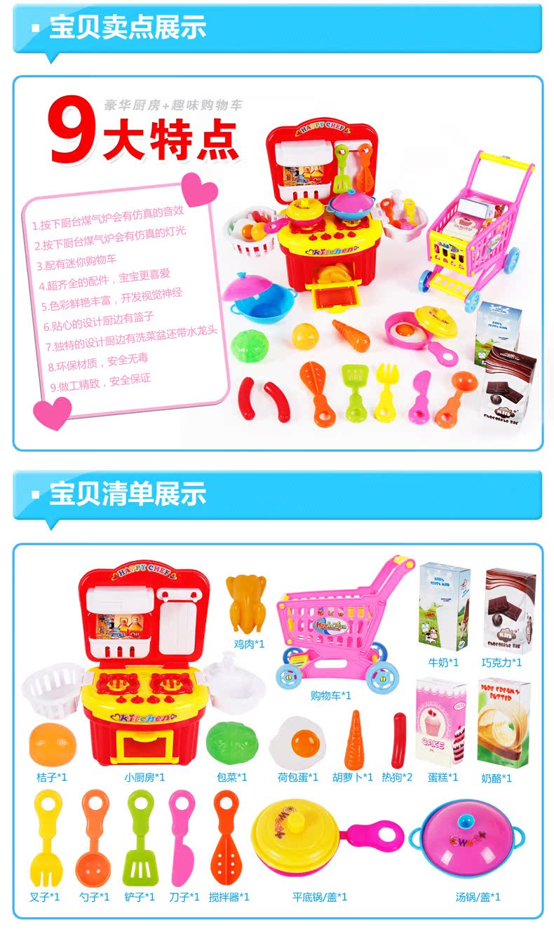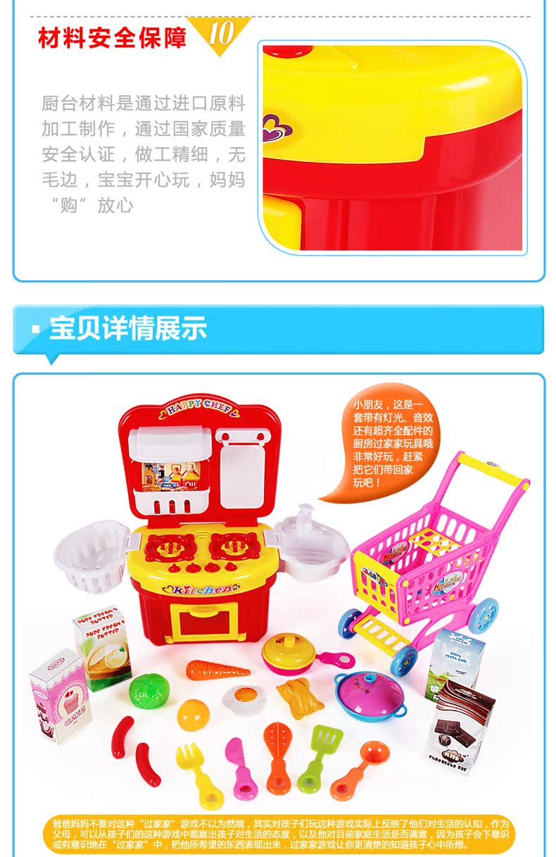 【寶貝名稱】過家家豪華燈光廚房 趣味手推車!