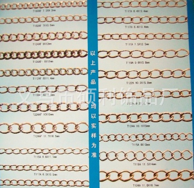 本廠專業(yè)生產鐵鏈.鋁鏈.銅鏈.不銹鋼鏈.珠鏈.萬字鏈.蛇鏈.側身鏈.磨鏈.雙織鏈.雙鉤鏈.手袋鏈.服飾鏈.錢包鏈.鑰匙鏈.花籃鏈.燈飾鏈.匙圈.皮帶扣.龍蝦扣.鑰匙扣.圈類.合金扣類.各類通用五金配件和金屬工藝品.廣泛適用于箱包手袋.服飾.鞋類.玩具.燈飾.家居用品.禮品.飾品.工藝裝飾等各種用途.歡迎各商家來電訂購.同行業(yè)有競爭能力. 本公司實力雄厚,以品質謀發(fā)展,以技術求生存,歡迎廣大客戶來電咨詢、打樣、訂貨。