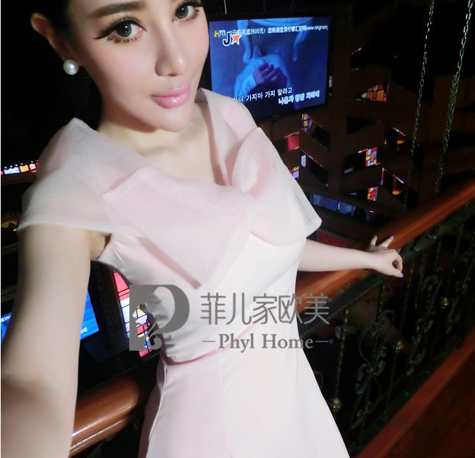 名媛性感百褶壓褶掛脖露肩雪紡連衣裙