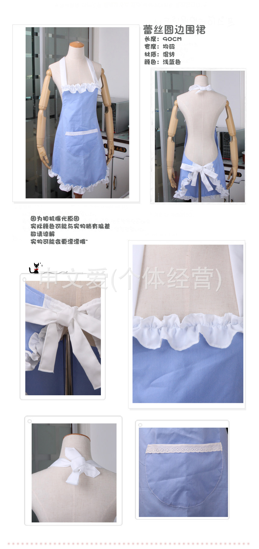 flower deco 2012韓版圍裙 圓邊蕾絲藍(lán)圍裙- apron