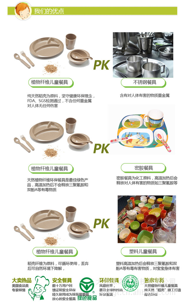 以“稻殼”為生產(chǎn)原料制成.注重健康和環(huán)保概念。各項(xiàng)衛(wèi)生指標(biāo)均符合國(guó)家食品衛(wèi)生標(biāo)準(zhǔn)和美國(guó)FDA衛(wèi)生標(biāo)準(zhǔn);已通過SGS檢測(cè),符合歐盟檢測(cè)指標(biāo);對(duì)兒童身體健康無任何危害,并且丟棄后在自然環(huán)境下可以降解;是我們?nèi)粘I钪?,消除白色污染、保護(hù)資源和生態(tài)環(huán)境必不可少的綠色產(chǎn)品。