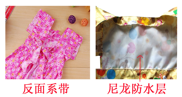 本產(chǎn)品根據(jù)寶寶日常飲食生活等特點而設計,外觀美麗、可愛又經(jīng)濟??煞乐挂挛锱K減少細菌傳染。寶寶幼小時還作小裙子穿喲,很實惠的。