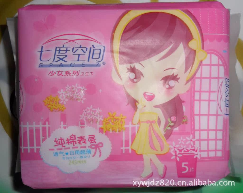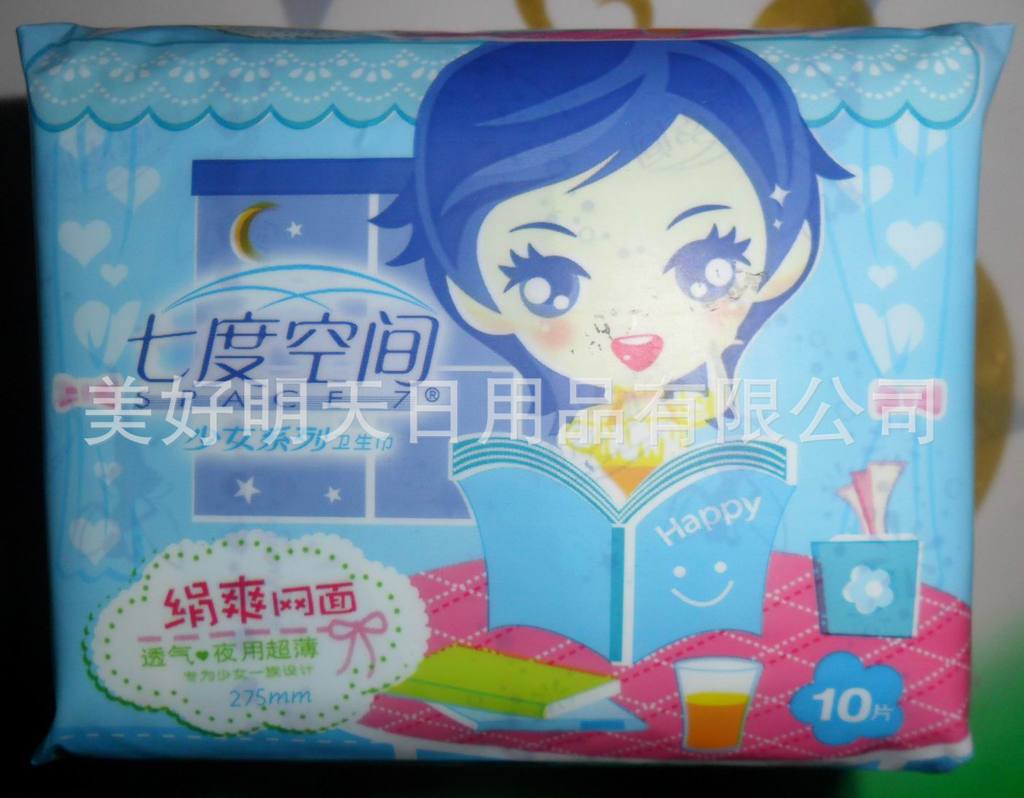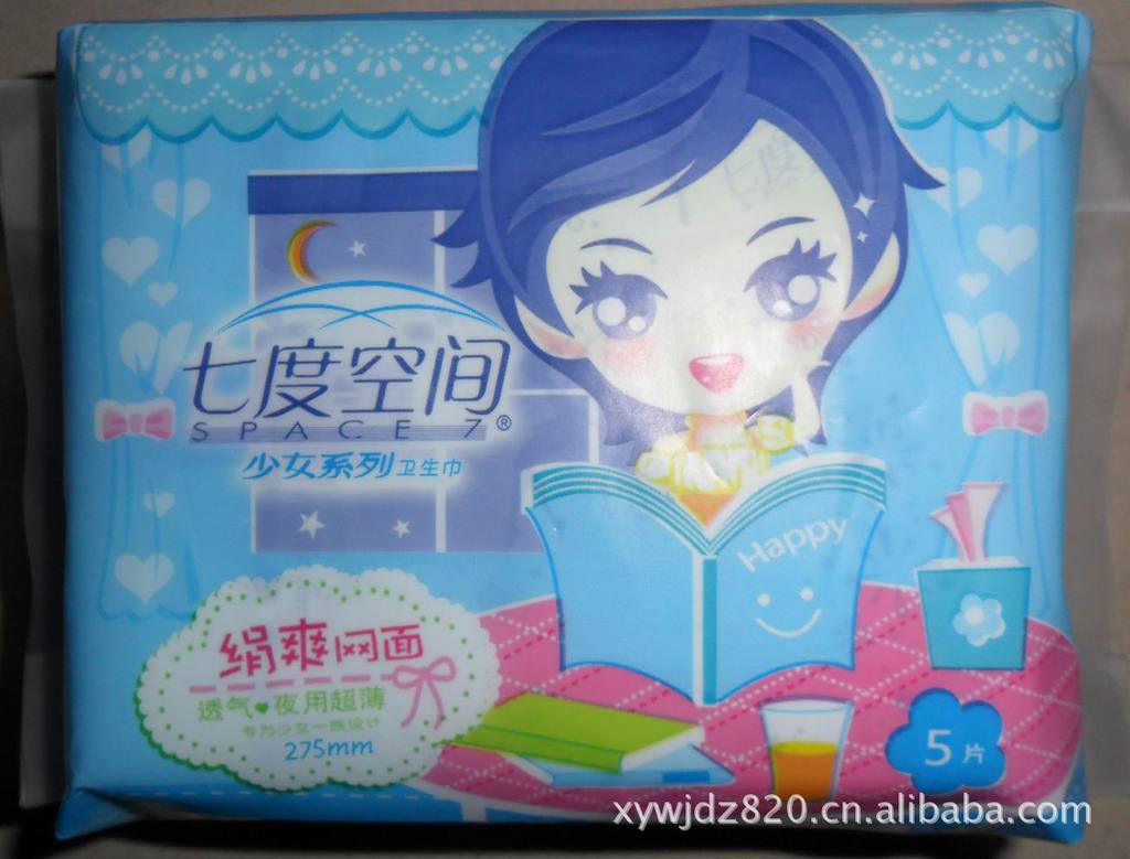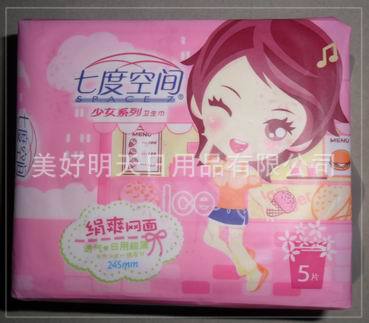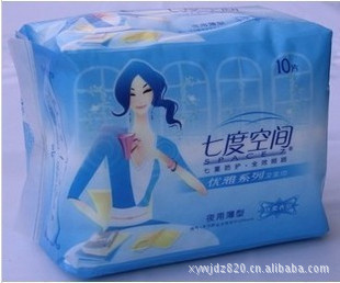 七度空間衛(wèi)生巾批發(fā)QSC7205娟爽網(wǎng)面超薄夜用5片,48包*5片