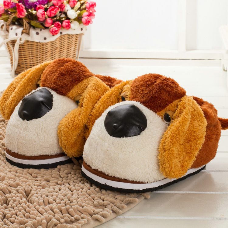 卡通可愛(ài)狗狗毛絨棉拖鞋家居萌寵汪星人女保暖防滑月子鞋室內(nèi)包跟