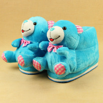 5色卡通毛絨熊拖鞋 高幫加厚女冬季棉...