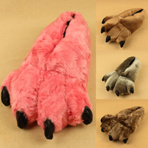 新女款韓版毛絨拖鞋 恐龍老虎豹爪子拖...