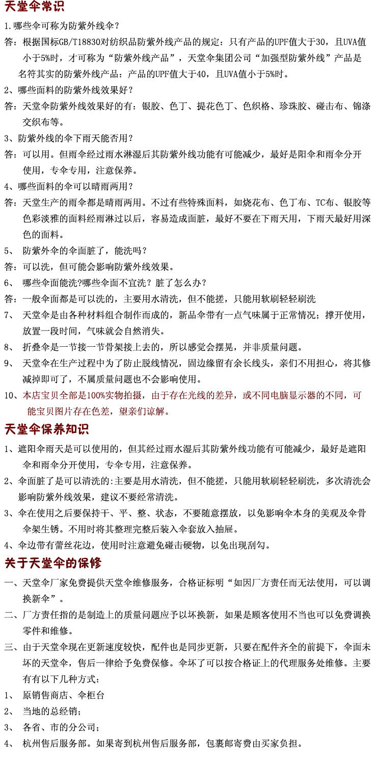 溫馨提示:因生產(chǎn)批次不同,天堂傘不斷升級(jí)換代,手柄和部分零件可能與圖片有所不同,
