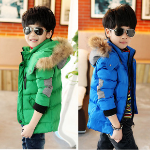 童裝冬款男童羽絨服 中大童兒童加厚毛領(lǐng)帶帽外套 童裝一件代發(fā)RMB71.00