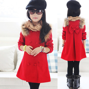童裝2014秋冬新款兒童中大童韓版毛呢加厚雙排扣童外套 童裝批發(fā)RMB71.00