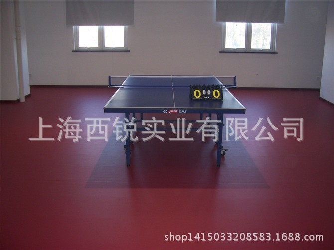 (紅色布紋PVC被廣泛應(yīng)用于乒乓球館地板鋪設(shè))