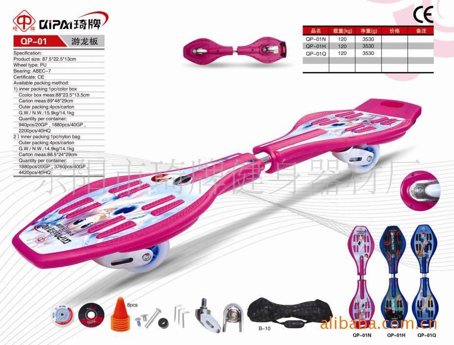 浙江省東陽(yáng)市琦牌健身器材廠(chǎng)是一家專(zhuān)業(yè)生產(chǎn)活力板、滑板車(chē)、QQ旋、跳跳球、螳螂車(chē)、活力車(chē)等系列健身用品的龍頭企業(yè)之一。并且是央視廣告品牌,同行業(yè)中一家請(qǐng)明星代言的工廠(chǎng),公司占地面積1萬(wàn)多平方米,開(kāi)發(fā)技術(shù)人員20人,生產(chǎn)員工300余人,活力板日產(chǎn)5000臺(tái),年產(chǎn)值5000多萬(wàn)元。