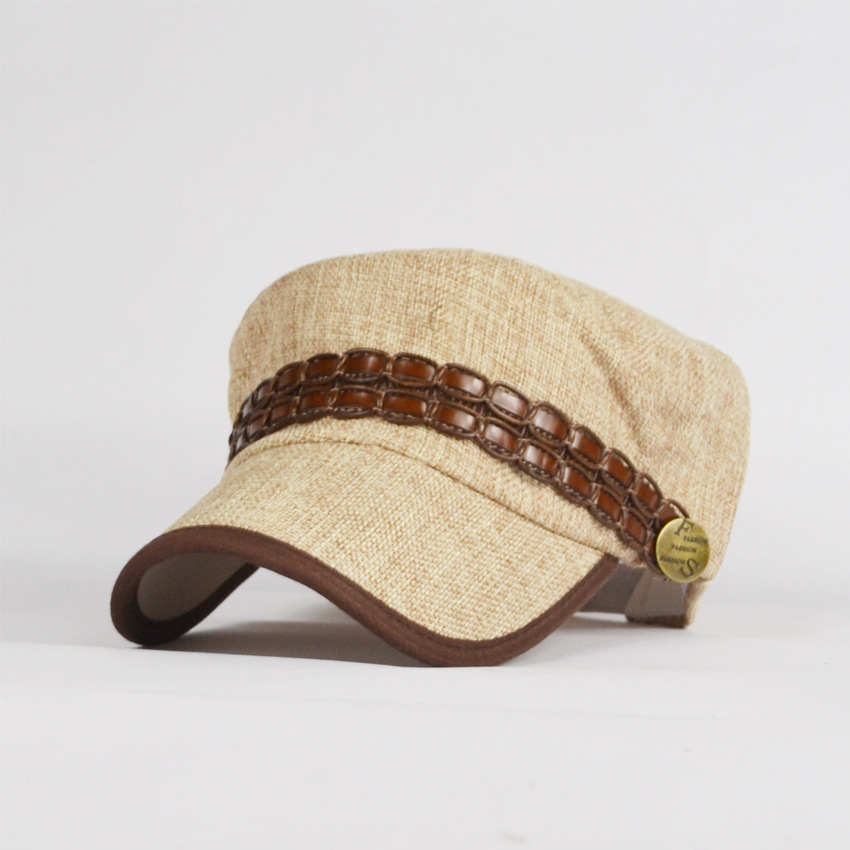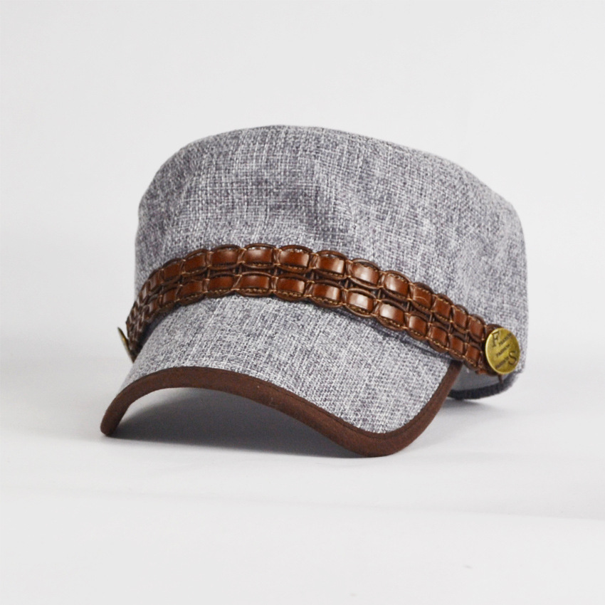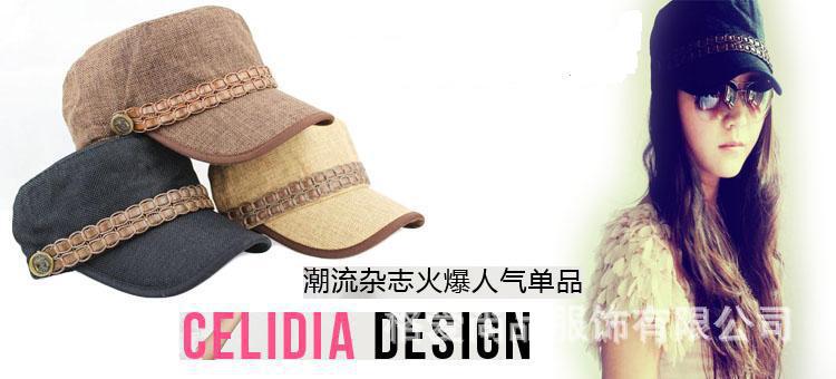 新店開張 全場第二檔價(jià)格 夏皮革帶平頂帽 軍帽 帽子 批發(fā)
