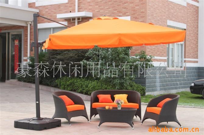這是2009年推出的一款新型遮陽傘,又名羅馬傘。這款遮陽傘的特點是傘面的角度在90度范圍內(nèi)可以隨意進行調(diào)節(jié),羅馬柱360度自由旋轉(zhuǎn)(依托旋轉(zhuǎn)底盤)。普通的遮陽傘沒有此功能。此外遮陽傘的面料采用了高防水;防紫外線的300克PA滌綸短纖布。遮陽傘的整體框架為鋁合金結(jié)構(gòu);緊固件全部采用了不銹鋼材料;大理石傘座采用分體組合式結(jié)構(gòu),具有移動方便之特點。詳情可以咨詢豪森休閑用品有限公司或豪森編藤家私銷售中心,聯(lián)系電話: 同時也歡迎您登陸我們的網(wǎng)站,我們的網(wǎng)址是或者