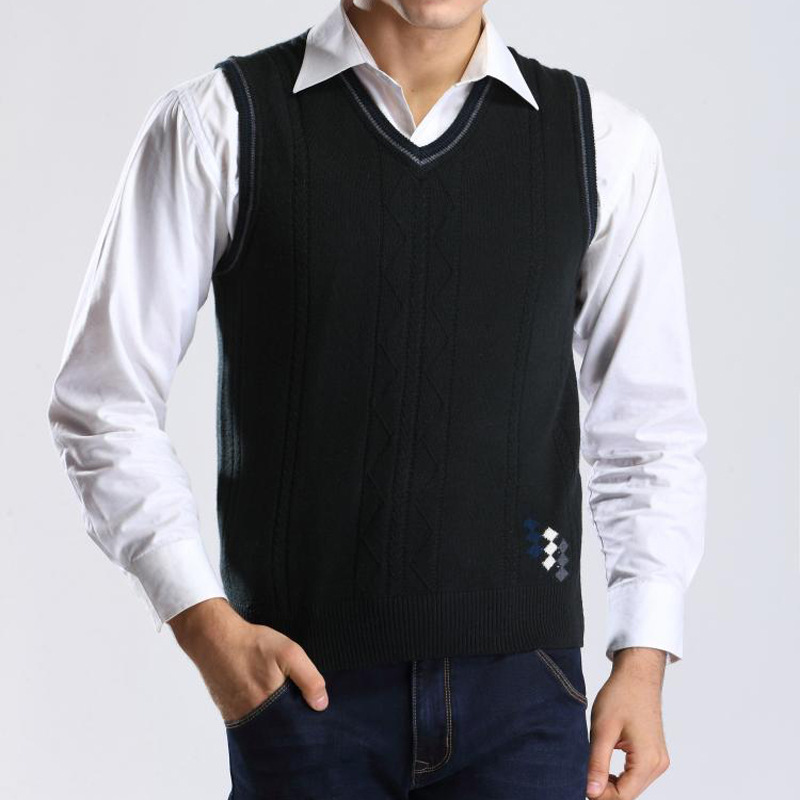 2014新款男士背心 春秋純色羊毛針織背心 馬提花商務男裝甲0830
