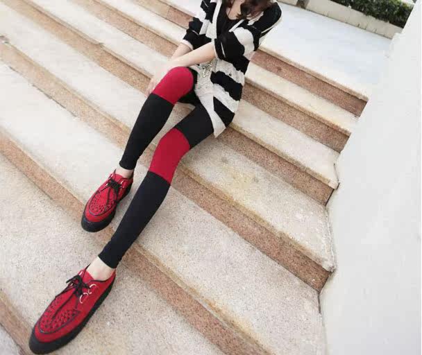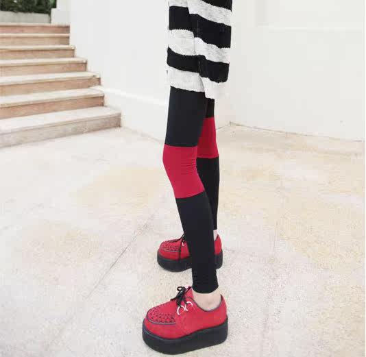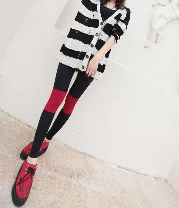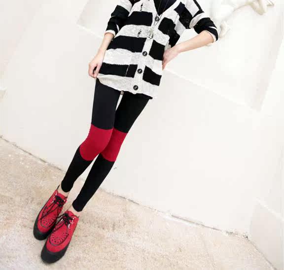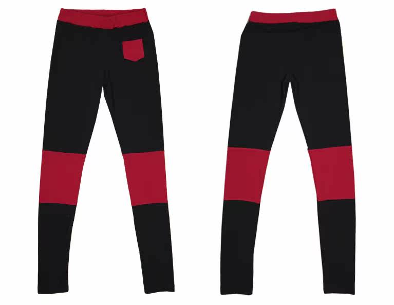 冬季打底褲 紅黑拼接色高彈九分褲顯瘦秋款女長(zhǎng)款鉛筆褲