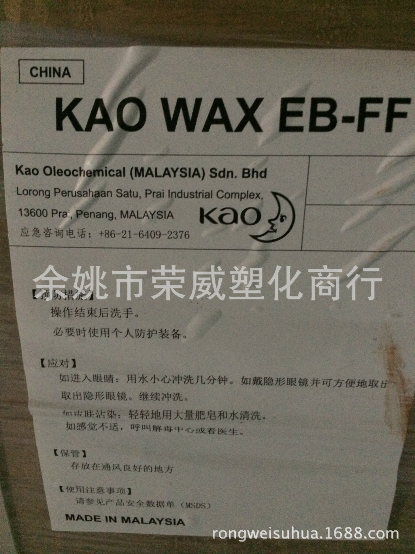 KAOWAX EB-FF是蠟狀的乙撐雙硬脂酸酰胺EBS,其具有高的熔點(diǎn),并在熔融狀態(tài)時(shí)保持低粘度。在高溫熔融態(tài)時(shí),與樹(shù)脂和溶劑有良好的相容性。