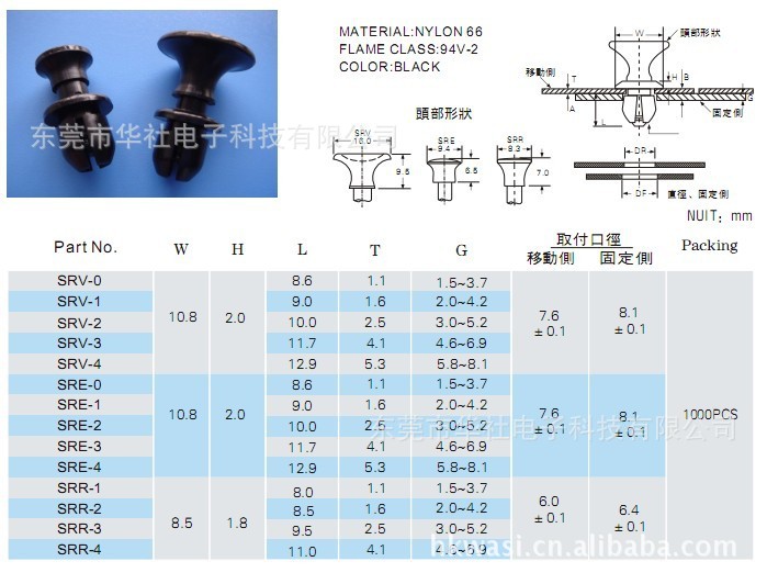 1、材質(zhì):UL合格之NYLON66(本色/黑色),防火等級94V-2;