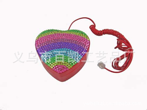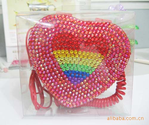 鑲鉆電話上市 精美禮品電話 彩虹水晶桃心電話