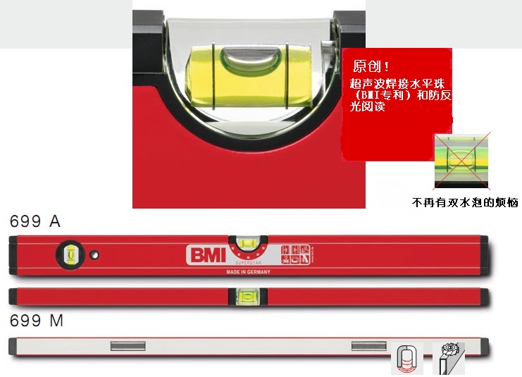 • BMI原創(chuàng)管式半球形水平面水平珠,帶放大功能,應(yīng)用于倒向位置測(cè)量,而且可以提供卓越的閱讀效果
