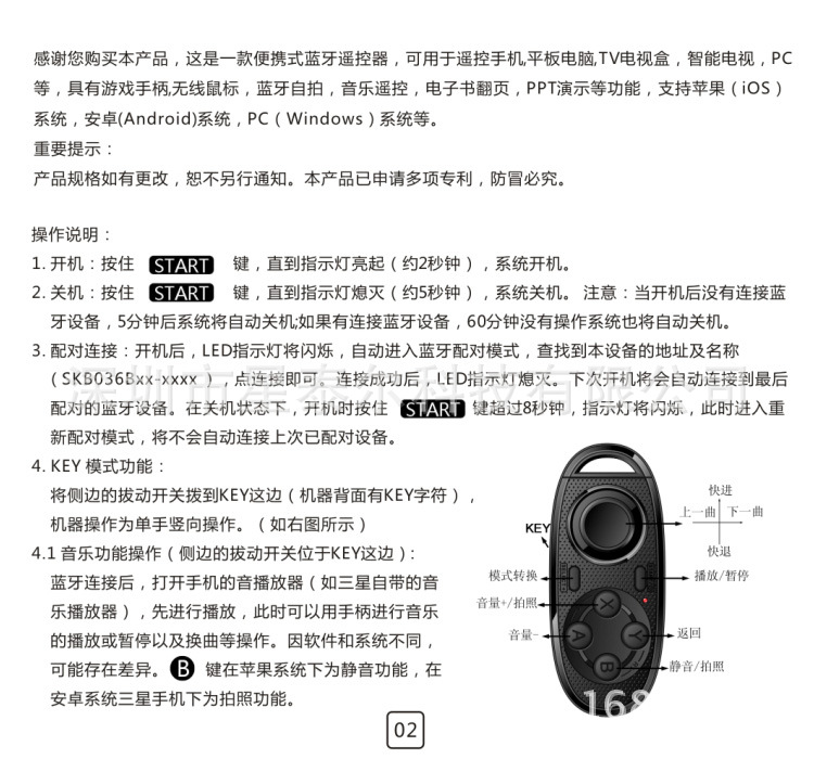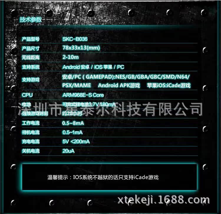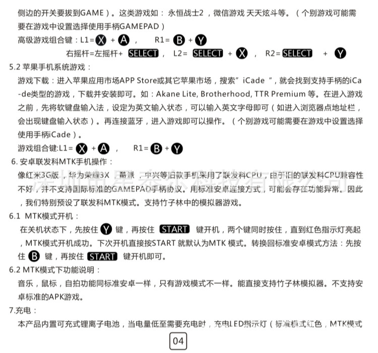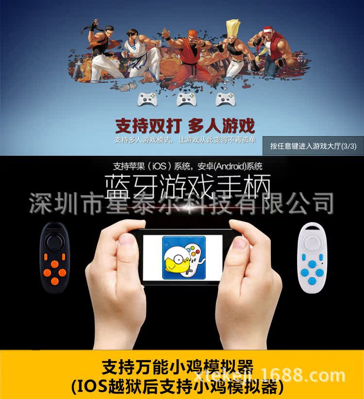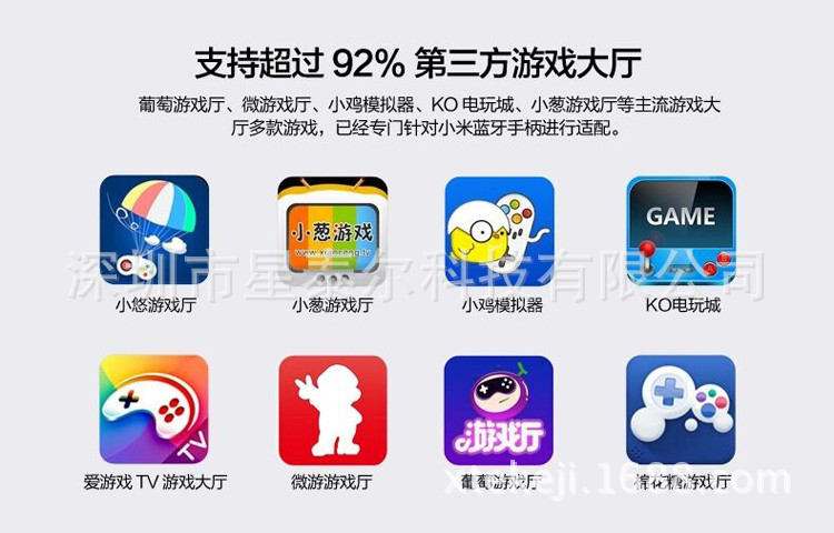 支持:手機(jī)、平板電腦、TV電視、藍(lán)牙遙控游戲手柄 兼容:安卓Android、蘋果ISO系統(tǒng)