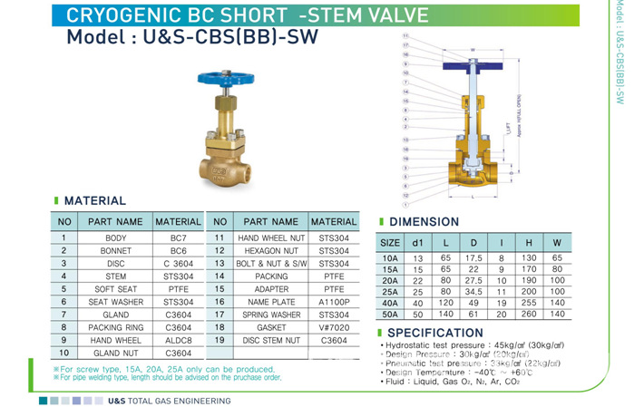 進(jìn)口 韓國(guó) U﹠S CBS(BB)-SW 低溫短柄閥