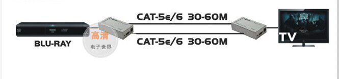 延長器接收端與發(fā)射端之間連接的cat5e或者cat6線纜….可達60米