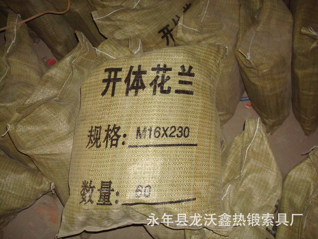 永年縣龍沃鑫熱鍛索具廠位于中國的標(biāo)準(zhǔn)件生產(chǎn)基地——河北省永年縣,這里緊鄰京深高速和107國道,地理位置優(yōu)越,交通十分便利,有發(fā)往全國各地的物流,發(fā)貨及時(shí)。永年縣龍沃鑫熱鍛索具廠是一家規(guī)模較大、成立較早專業(yè)生產(chǎn)銷售索具系列產(chǎn)品的企業(yè)。公司主營產(chǎn)品有:開體花蘭、日式開體花蘭、花蘭螺絲、花蘭螺栓、熱鍛索具、鋼絲繩卡頭、卸扣、吊環(huán)等各種索具、馬車螺栓。我公司生產(chǎn)設(shè)備精良,檢測手段先進(jìn),工藝技術(shù)處于國內(nèi)同行業(yè)領(lǐng)先水平,產(chǎn)品遠(yuǎn)銷歐美,中東等地,受到國內(nèi)外客戶的高度贊揚(yáng)。我公司自建廠以來一直致力于熱鍛索具的生產(chǎn),M10--M24開體花蘭(OO型、OC型、CC型、花蘭體),常年備有現(xiàn)貨。歡迎廣大新老客戶來我公司參觀、洽談業(yè)務(wù)。