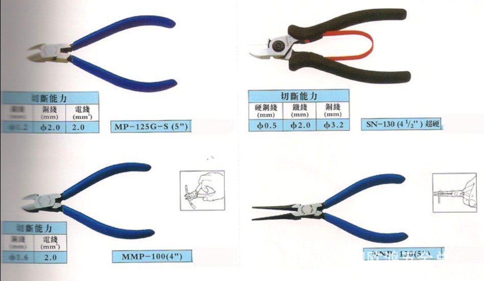 斜口鉗 ,型號:MP-100(4”)切斷能力-銅線:1.6MM 電線:2.0MM