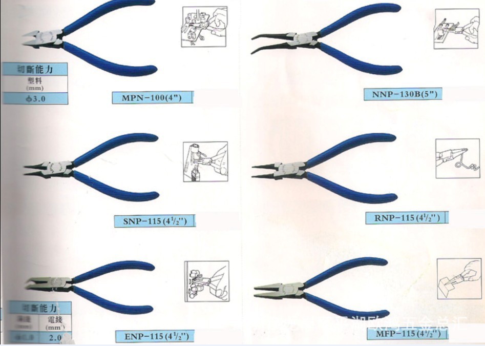 斜口鉗 ,型號:MPN-100(4”)切斷能力-樹脂(塑料):3.0MM