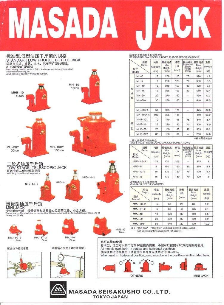 供應(yīng)原裝進(jìn)口 日本馬沙達(dá)MASADA JACK 迷你型油壓千斤頂