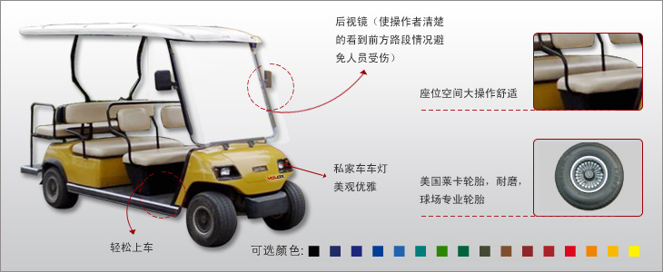 貨號20v00001備注電機48伏他勵、3.7kw美國ADC品牌電池6個8伏美國Fullriver(免維護)充電器直流電48伏外置充電機控制器穩(wěn)定250安培CurTis1266加速器霍爾感應(yīng)加速器CurTis轉(zhuǎn)向雙向齒輪齒條轉(zhuǎn)向系統(tǒng),自動間隙補償功能維勒科前部避震獨立支撐減振器液壓彈簧后部避震獨立支撐減振器液壓彈簧后橋無級變速后橋意大利GRAZIANO(同美國CLUB CAR高爾夫球車原配后橋)剎車自調(diào)后輪鼓式機械剎車及電剎車雙重功能下坡可實現(xiàn)限速,不超過24KM/H框架/底盤高強度鋼管焊接結(jié)構(gòu)電泳防銹烤漆處理車身“PP”合金汽車專用工程材料同美國CLUB CAR球車車身材料起動電鎖 原裝美國進口前后檔開關(guān) 原裝美國進口前輪胎/后輪胎18x8.50-8/18x8.50-8美國CARLISLE氣壓34PSI 長3400mm 寬1200mm 高1900mm 底盤離地高度114mm 輪胎面間距(前/后)870mm/980mm 凈重(不計電池)310kg 限載人數(shù)6人 向前速度18-24 km/h 制動距離≤2.5 m 轉(zhuǎn)彎半徑3.9m 爬坡能力(滿載)安全爬坡:30% 續(xù)駛里程(空載)90~100km