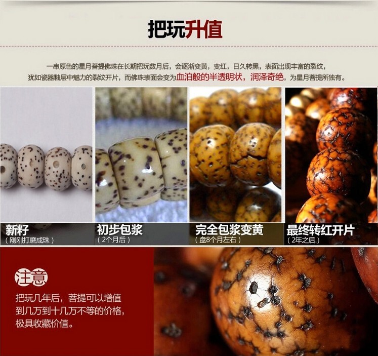 應(yīng)廣大客戶要求,現(xiàn)推出D I Y款此款產(chǎn)品需要您自己手工自創(chuàng)自串成鏈,串出屬于您的款式 我們的產(chǎn)品出廠都是采用真空包裝保存發(fā)送到您的手中的,所以請(qǐng)您仔細(xì)觀看外觀大小是否滿意再拆開真空包裝,讓他變成屬于您的菩提子,一輩子的歸屬。菩提跟其它的飾品不一樣它是不斷變化的,是越玩越有價(jià)值的,它的樣子、品相是靠吸收人體的鹽分和油脂,慢慢氧化逐漸變化的,從包漿、變色、掛瓷、到開片是需要很長(zhǎng)一段時(shí)間的,或者說它靈氣、法力、功德也是隨著時(shí)間慢慢增強(qiáng)的。自己為自己串一條自屬于自己的菩提。【所以請(qǐng)您務(wù)必看仔細(xì)是否喜愛再拆開真空包裝!一旦拆開視情節(jié)退換,請(qǐng)您寬恕】