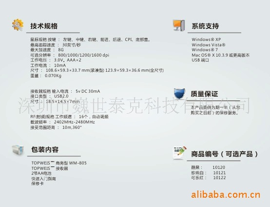 冠巍WM-805無線鼠標(biāo)規(guī)格參數(shù)