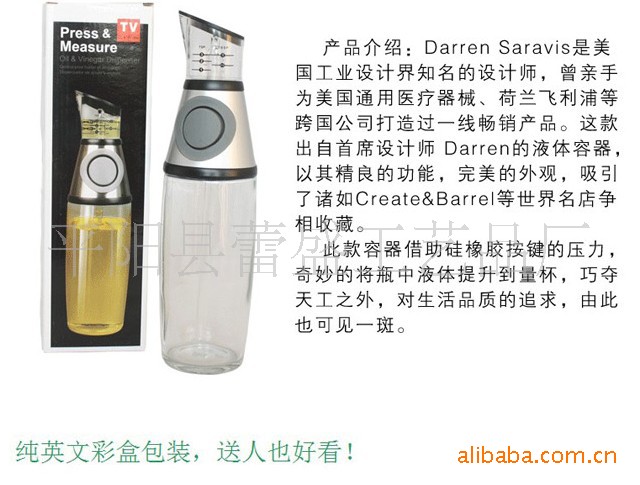 油瓶已更新?lián)Q代了,本款可計量油瓶都有全新改進,能更好的把握油量,密封更佳,美觀依然。 聯(lián)系電話: QQ:3 1