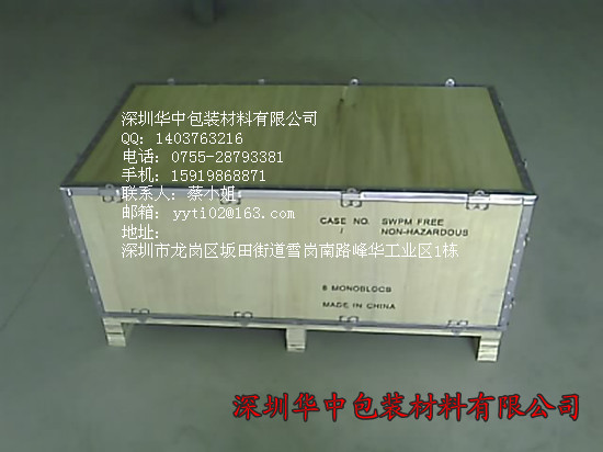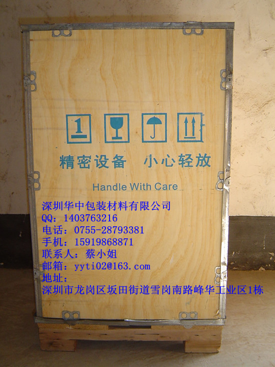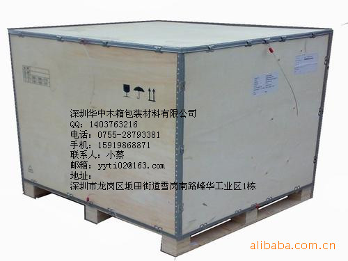 深圳華中包裝 公司主要產(chǎn)品類型有:出口木箱、出口卡板、免熏蒸木箱、熏蒸木箱、免熏蒸卡板(托盤)、熏蒸卡板(托盤)、真空包裝箱、防水木箱、防震木箱、夾板箱、實木箱、地臺板、棧板等各種包裝材料。產(chǎn)品承重從幾公斤到幾十噸。廣泛適用于機械、電氣(電器)、通信、玻璃、精密儀器數(shù)控機柜(機床)等產(chǎn)品設(shè)備的安全運輸包裝。公司已通過ISO9001:2000國際質(zhì)量體系認證;產(chǎn)品曾榮獲《中國中輕產(chǎn)品質(zhì)量認證中心》、《質(zhì)量、信譽雙保障示范單位》。