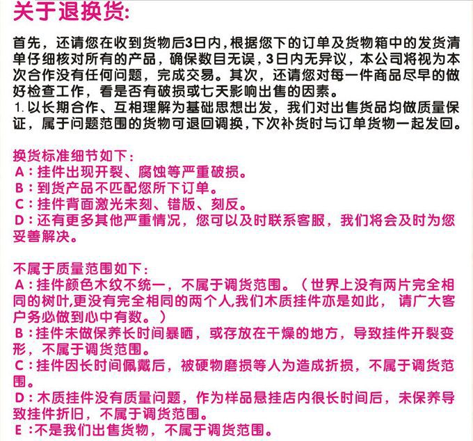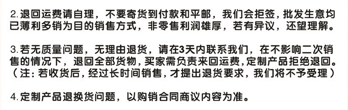 因?yàn)槲锪鲗?dǎo)致貨物破損,需要退換貨的買家要自己承擔(dān)運(yùn)費(fèi)!簽收前請當(dāng)面點(diǎn)清再收貨!