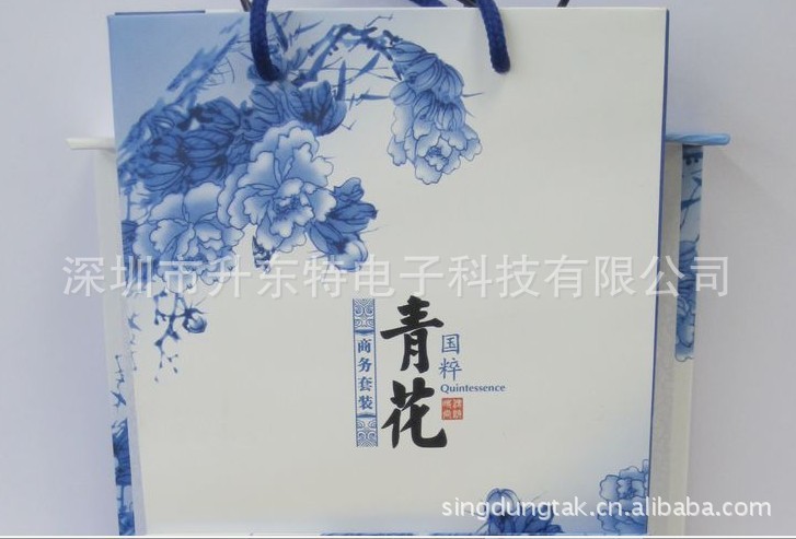 產(chǎn)品配置:青花陶瓷簽字筆 青花瓷U盤 青花瓷滴膠名片盒 禮盒包裝 手提袋