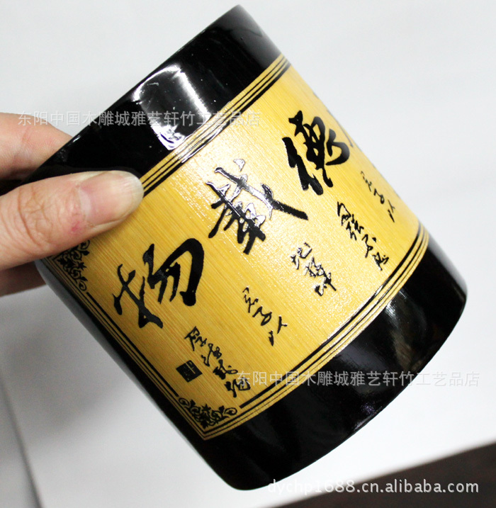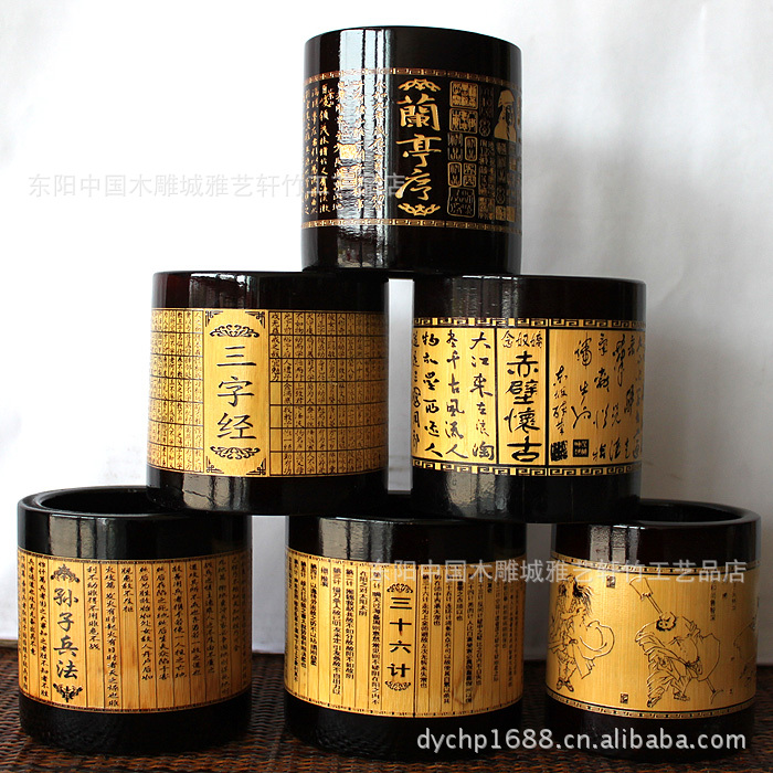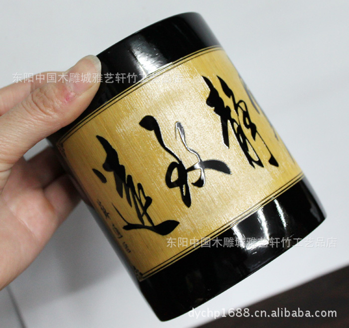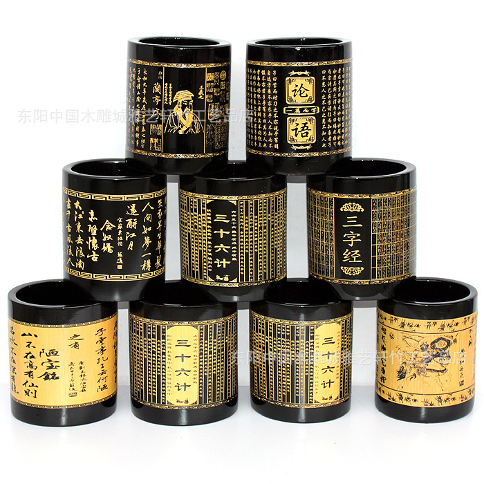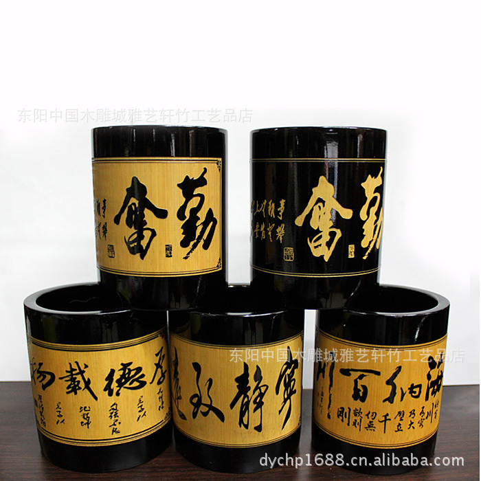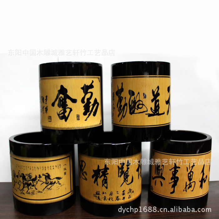 竹筆筒批發(fā)/黑色筆筒/文房用品/可定做/可印LOGO