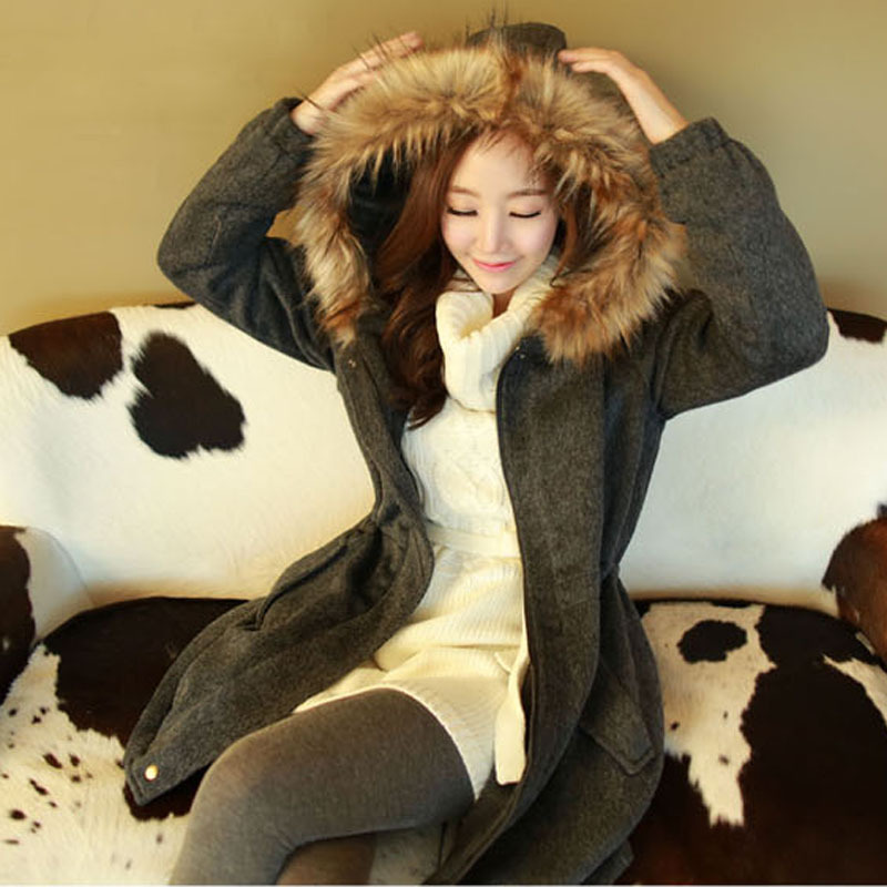 東大門代購2014冬季韓國同步款豪華大毛領夾棉保暖中長款寬松呢子大衣毛呢外套