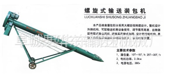 本產(chǎn)品糧食灌包部分采用大螺距低轉(zhuǎn)速設(shè)計(jì),整機(jī)設(shè)計(jì)升降機(jī)構(gòu),可配輸送機(jī)等設(shè)備使用,調(diào)節(jié)需用高度,出糧器配有吸式除塵風(fēng)機(jī),進(jìn)糧采用錐式加網(wǎng),設(shè)計(jì)有行輪機(jī)構(gòu),易插入糧農(nóng)組織堆,運(yùn)轉(zhuǎn)平穩(wěn),灌包量大,使用維修方便。