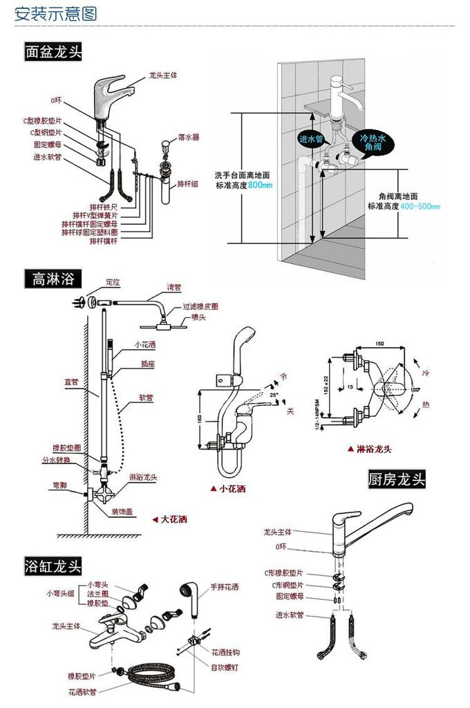 5.為保護水龍頭光潔明亮,請使用后用溫和中性的清潔劑清洗表面的污垢,切勿用酸堿性清潔劑、粗糙劑、紗布和肥皂等。