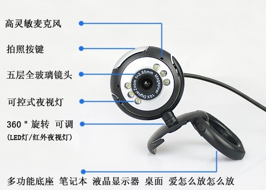 廠家批發(fā)電腦攝像頭web camera 帶麥克風(fēng)帶夜視燈USB電腦視頻頭
