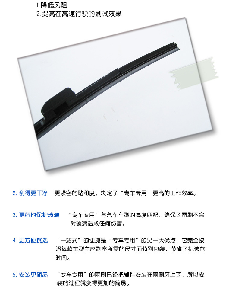 1、原廠標準接口設(shè)計,安裝方便,無須更換雨刮臂,直接更換。