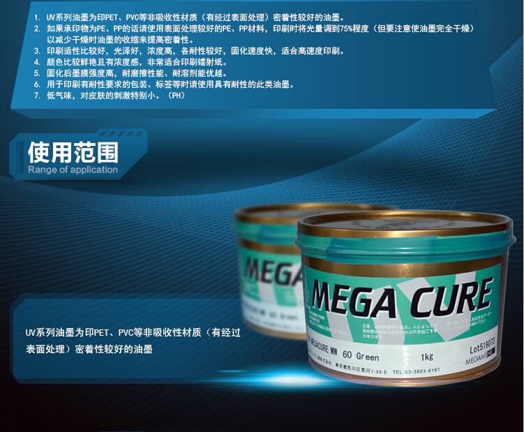 1、UV系列油墨為印PET、PVC等非吸收性材質(zhì)(有經(jīng)過表面處理)密著性較好的油墨。