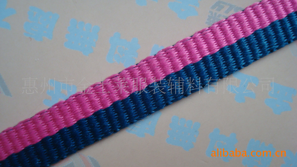 廠家專業(yè)生產(chǎn);各種款式織帶,織繩、384針電腦織字帶、休閑腰帶、印花腰帶、帆布腰帶、織花腰帶、SP線帶、棉腰帶、腰帶、織帶、織繩、印嘜、吊牌、休閑腰帶,床邊帶、可由客人要求定做。材料有滌綸、poly 紗、PP紗、丙綸、高強(qiáng)絲、SP紗、純棉、絲光棉、尼龍、高彈絲、有光絲、全部為環(huán)保材料,出口產(chǎn)品,本公司自備染色車間、織帶車間、車縫車間、您如果對(duì)我們的服裝輔料、織帶、織繩、腰帶、有不明可來(lái)電話咨詢, 我們會(huì)竭誠(chéng)為您服務(wù)。服務(wù)電話; 惠州市金士萊服裝輔料有限公司